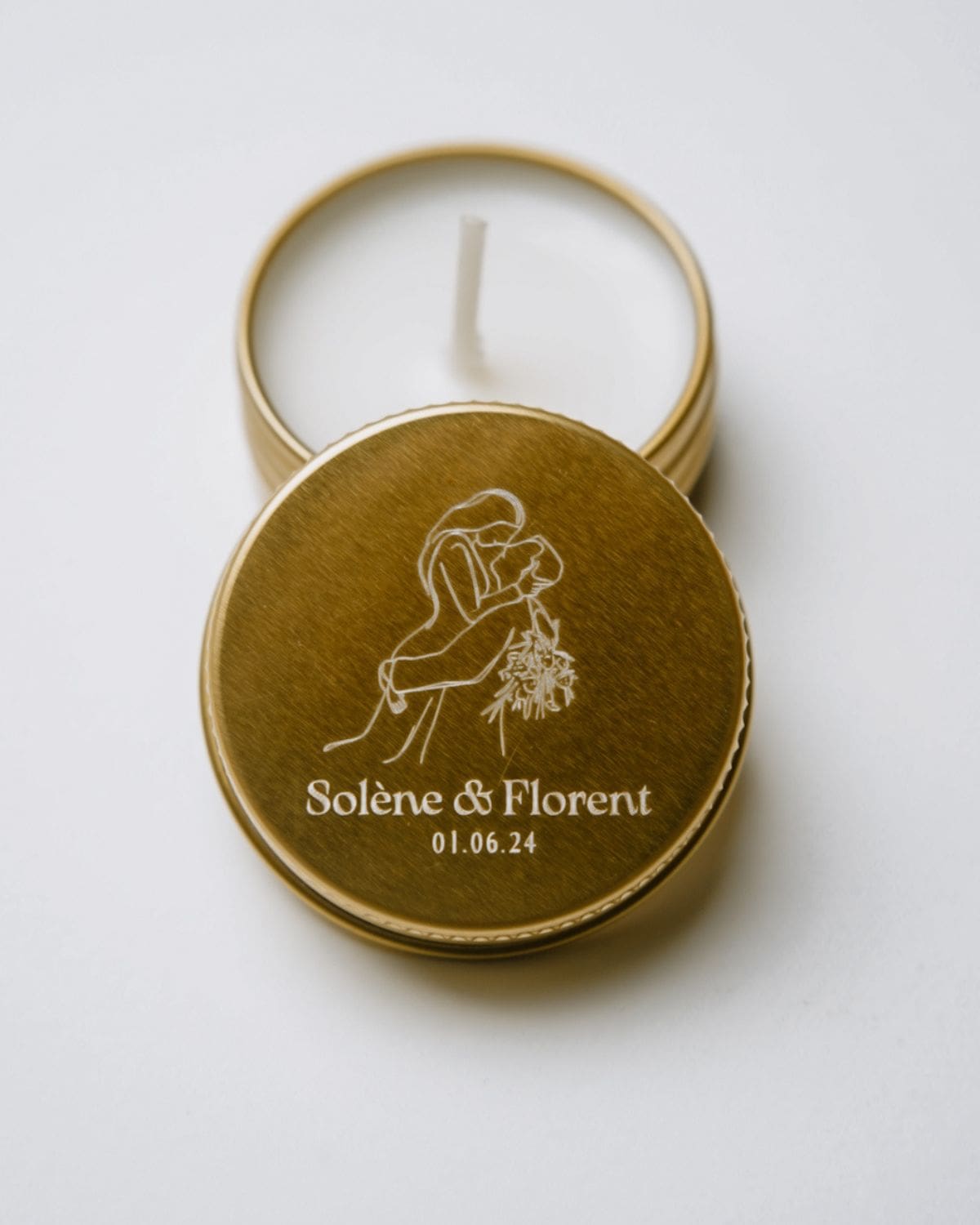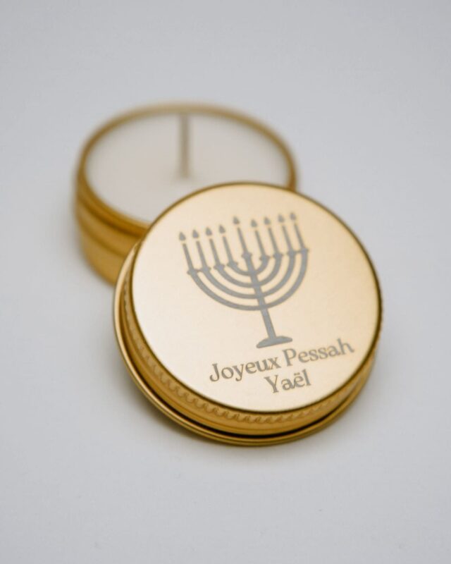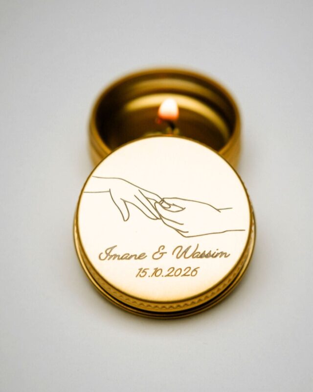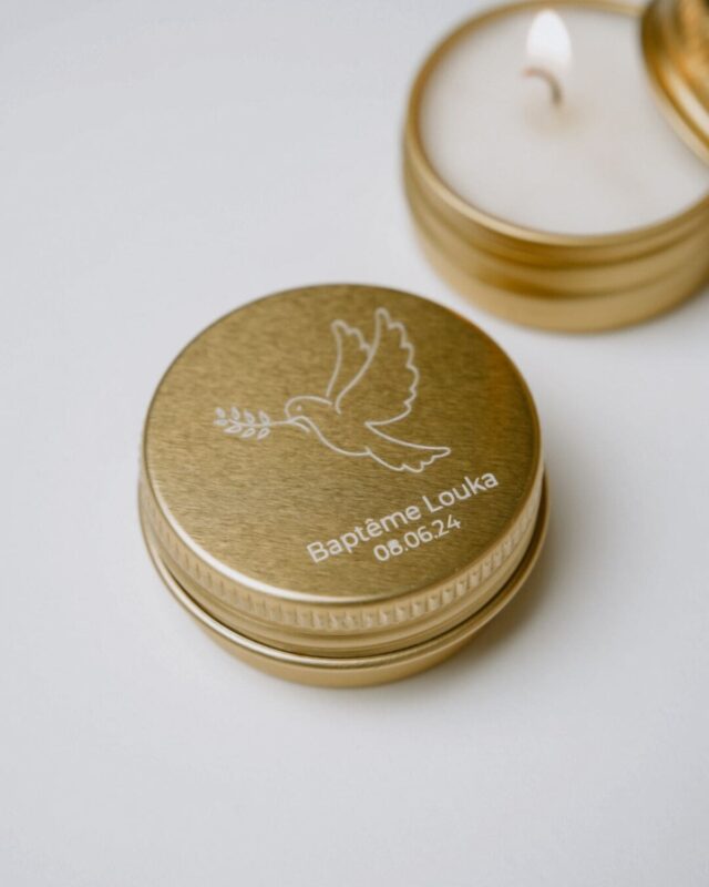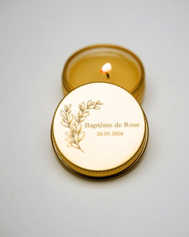 Mini bougie personnalisée, parfumée et gravée, fabriquée en France.