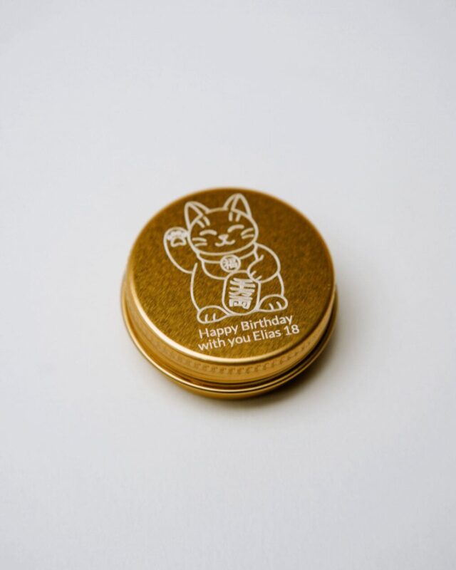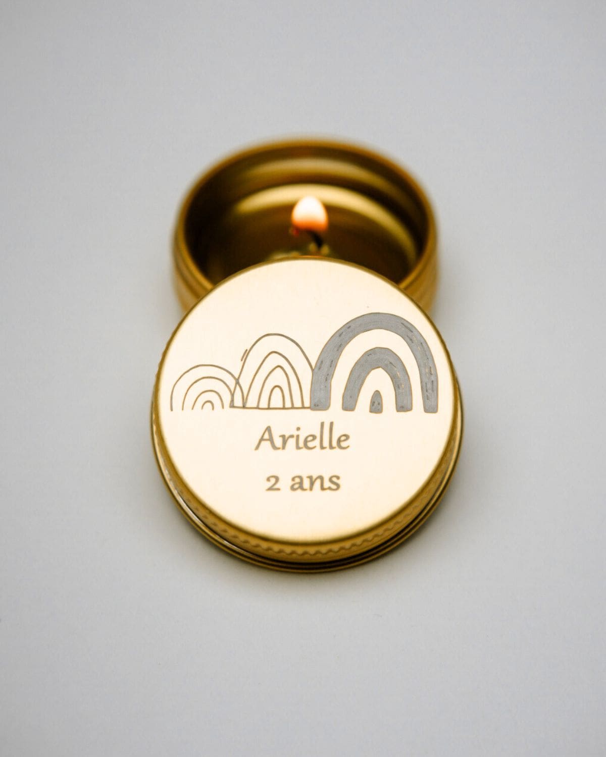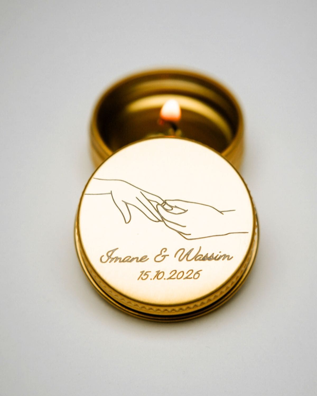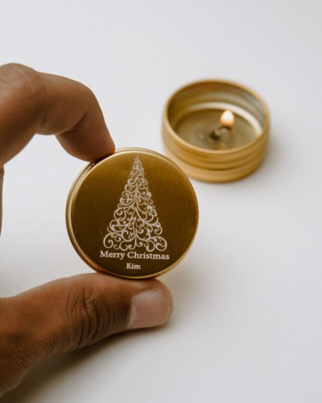 Mini bougie personnalisée, parfumée et gravée, fabriquée en France.